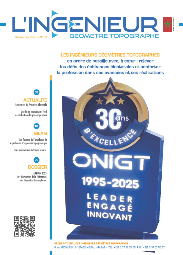 Force pour moi est de reconnaitre que je suis fier du chemin parcouru, des acquis consolidés et des avancées accomplies ensemble. Le constat est donc particulièrement important en ce moment où l’ONIGT cherche à consolider ces acquis, à redonner une perspective de développement durable au travail des professionnels de l’ingénierie topographique et à renforcer le positionnement de notre profession à l’international aux cotés des Instances de renommée au sein desquelles il milite activement.